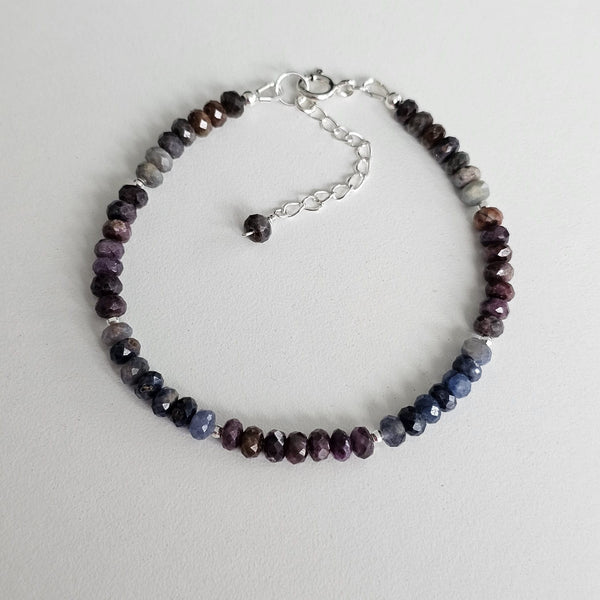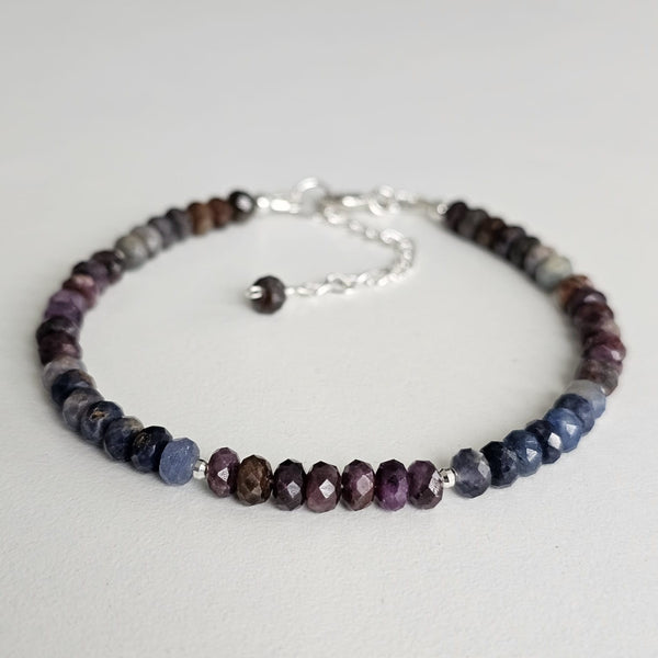 Designed and handcrafted in UK by Pickofjoy, this bracelet features genuinenatural and untreated Ruby and Blue Sapphire rondelle beads and 925 SterlingSilver. The faceted rondelle measure about 4x3mm.Wearing a bracelet made of natural and untreated Ruby and Blue Sapphire rondellebeads paired with 925 Sterling Silver is not only beautiful but is also believedto provide several metaphysical and health-related benefits, particularly inholistic and crystal healing practices.