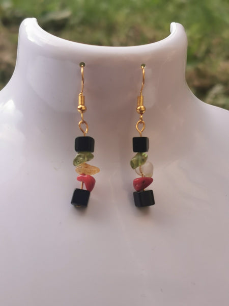 Reggae Rasta Jamaica Style Gold Plated Gemstone Earrings
